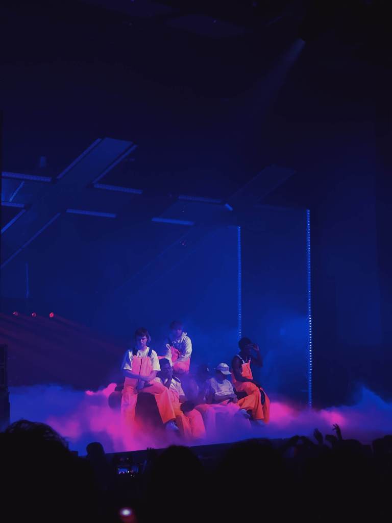 The show opened up with Rihannaโs โStayโ playing before it transitioned into their song, โST. PERCY.โ One by one the members of Brockhampton walked out onto the stage wearing their signature orange jumpsuits while performing their various verses. Above them hung three mirrored crosses, totally on brand with the tourโs name.