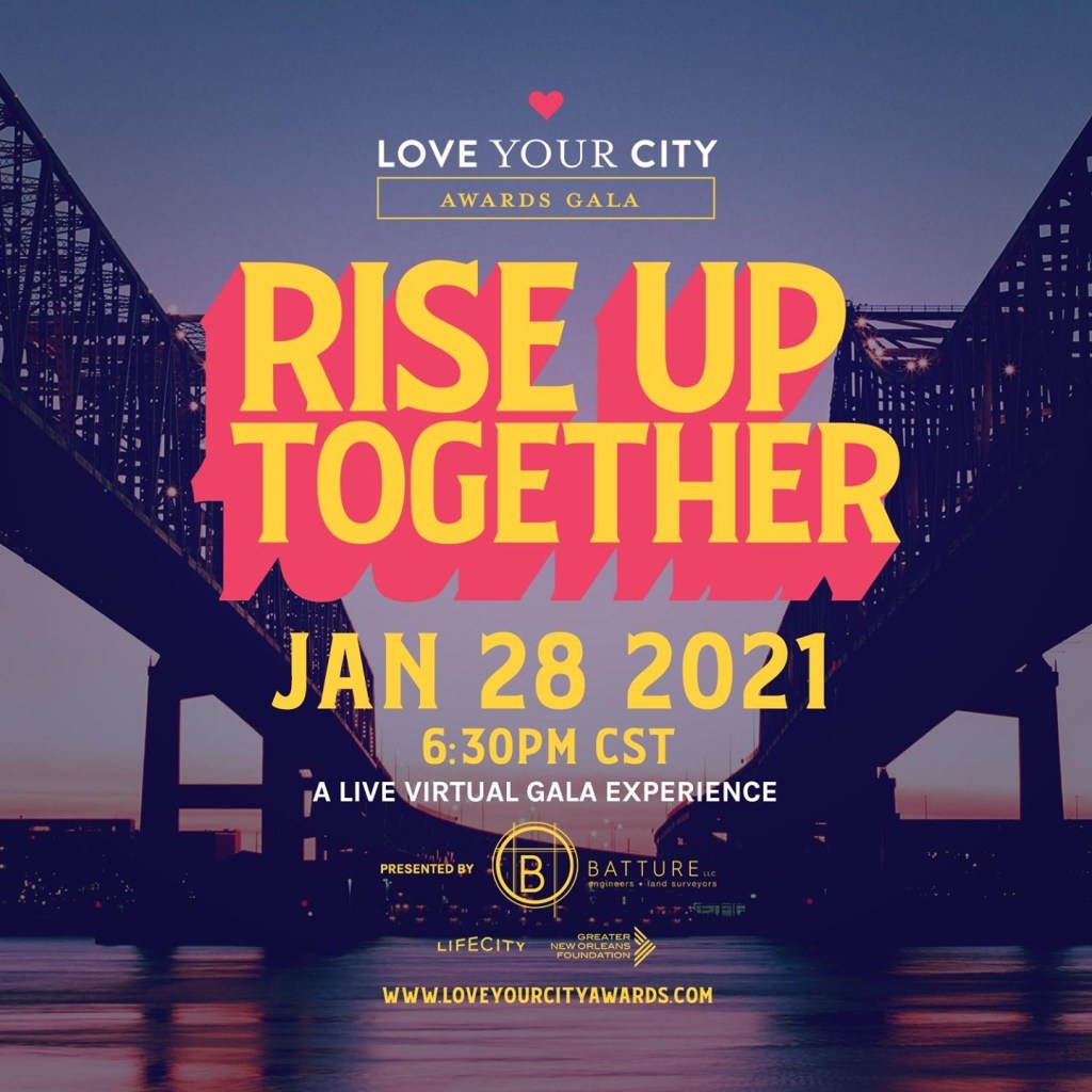 LifeCity is hosting the ninth edition of the Love Your City Award Gala on Thursday, January 28, 2021. This virtual music event will feature performances by local New Orleans artists including Iguanas, Blato Zlato, Margie Perez, YoungFellaz Brass Band, Ed Wise Trio and more. Ticket proceeds will go towards supporting local musicians, black-owned New Orleans restaurants and helping to feed local families in need.