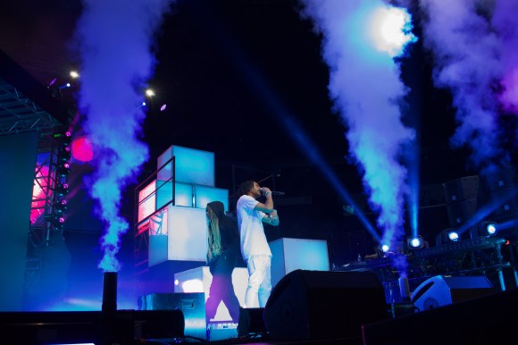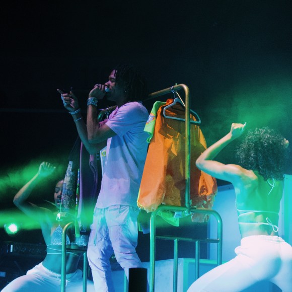 Picture this: The lights go out and Drake’s “Wants and Needs” starts playing throughout the smoke-filled venue. As Drake says “I’m in love with two girls at one time and they tens,” Lil Baby appears on a raised platform getting out of a bed with two women before diving into his verse with smoke going off. Talk about an introduction!