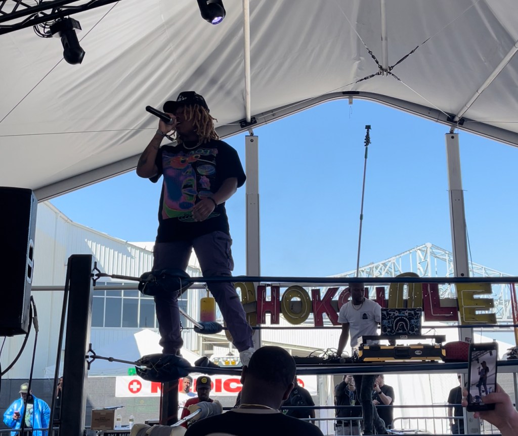 I arrived a few hours after the festival kicked off. After getting checked in, I headed over to the Bridge stage to catch New Orleans’ own, Rob49, take the stage. The 20-year-old rapper performed his recent hit “Vulture Island V2” which features Lil Baby. The two recently made headlines after filming the music video in various spots in New Orleans including on Oretha Castle Haley Blvd and near the Iberville projects. Before finishing his set, Rob49 brought a fan on stage – and he did not miss a beat! The superfan knew every word to the remaining songs the rapper performed.