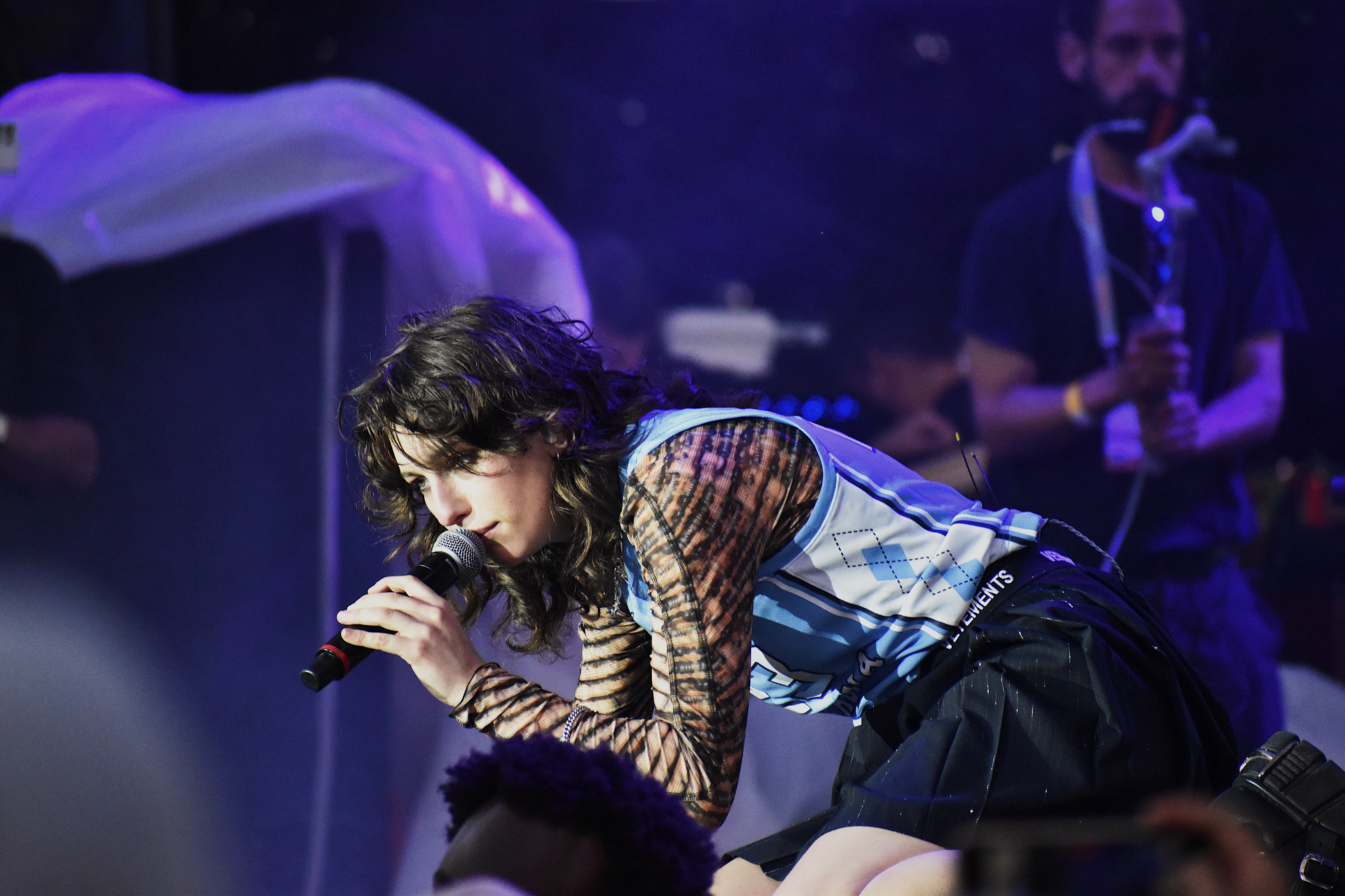 Next up was The Kid LAROI. Fans got on their friend’s shoulders, mosh pits opened, and the crowd packed in as the Australian rapper took the stage. He did not disappoint as his set included trippy visuals, pyro, and smoke! He led the crowd into a ‘Long live Juice WRLD’ chant before he performed their collaboration, “Go.” Laroi took a second to acknowledge and thank everyone for watching the live stream from home. For a lot of artists, they haven’t gotten the chance to perform the music they’ve released over the last two years. The Kid LAROI is no exception, “I don’t think I’ve ever performed this song anywhere,” LAROI told the crowd before performing his song “SELFISH” from his 2020 mixtape, F*ck Love. He, like Bia, got close up to the front row fans along with performing an unreleased song – that some fans knew almost all the lyrics to! “And now for what you’ve all been waiting for,” LAROI told the crowd before performing his #1 hit “Stay.” Closing out his set, the rapper performed his song “Without You” while holding a bag of cooked pasta given to him by a fan in the crowd.